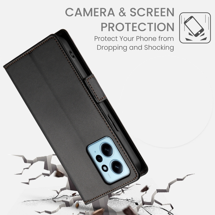 Para Xiaomi Redmi Note 12 4G Funda para Teléfono de Cuero Esmerilado Magnético con Hebilla Lateral Global (Negro)
