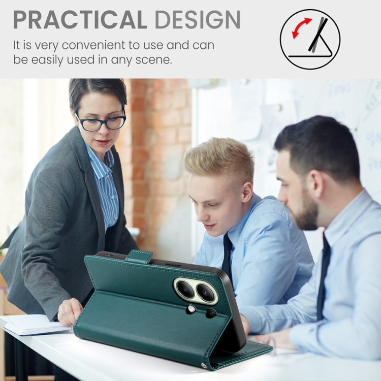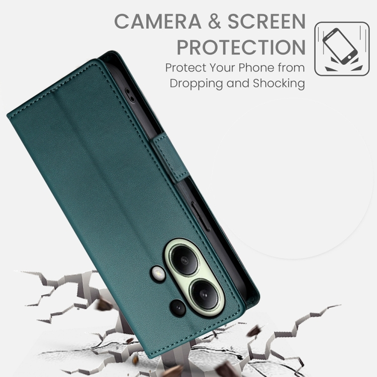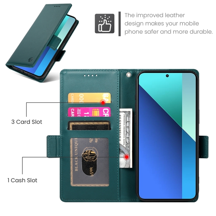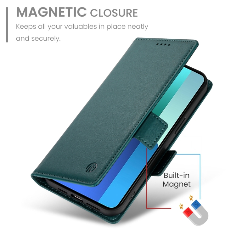 Para Xiaomi Redmi Note 13 4G Funda para Teléfono de Cuero Esmerilado Magnético con Hebilla Lateral (Verde Oscuro)