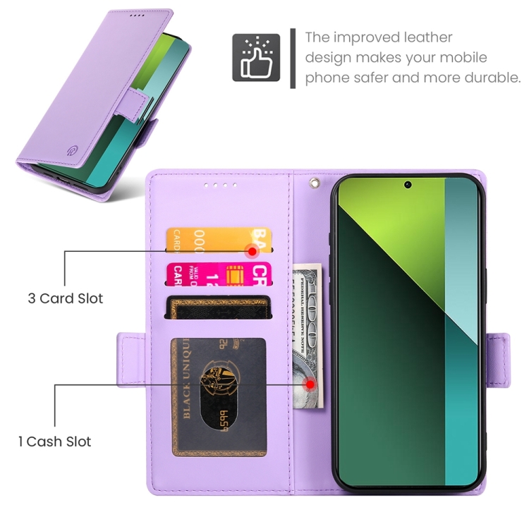 Para Xiaomi Redmi Note 13 Pro 5G Funda para Teléfono de Cuero Esmerilado Magnético con Hebilla Lateral (Púrpura)