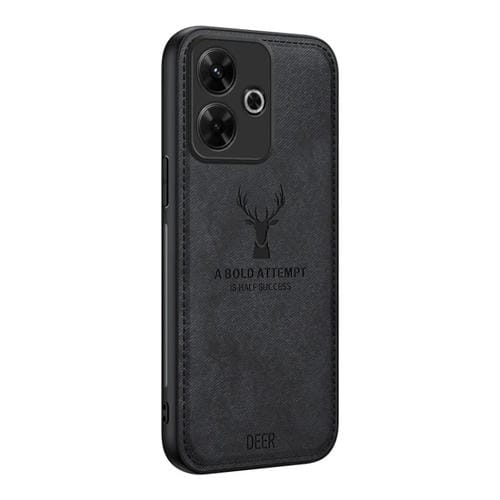 Para Xiaomi Redmi Note 13R Funda para Teléfono con Todo Incluido de Piel de Tela con Cabeza de Ciervo (Negro)