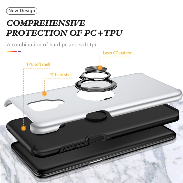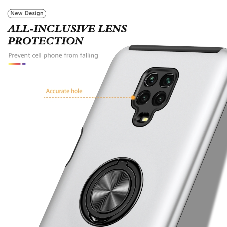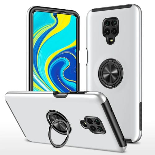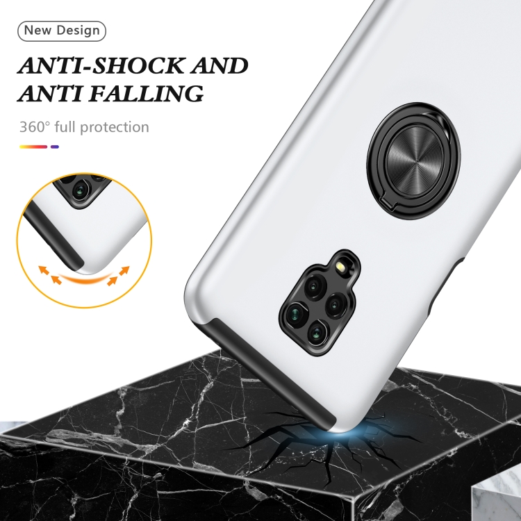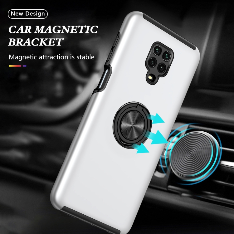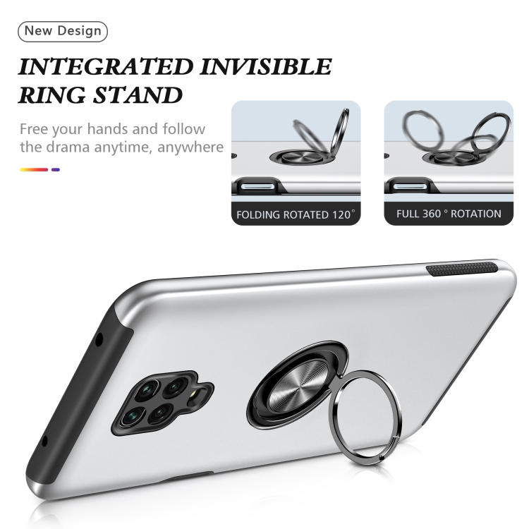 Para Xiaomi Redmi Note 9 PC / Nota 9S PC + TPU Funda de Teléfono Magnético a Prueba de Golpes con Titular de Anillo Invisible (Plata)