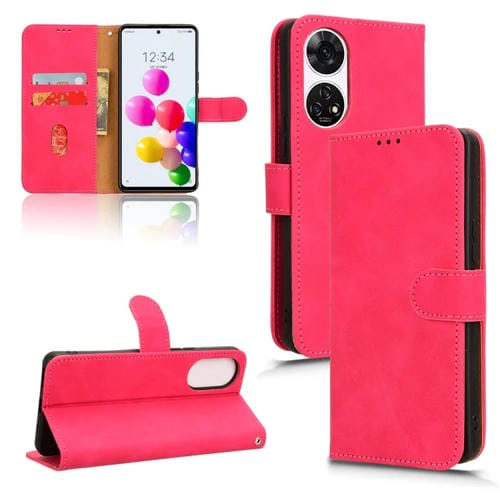 Funda de Cuero con Tapa Magnética para ZTE Anshin Family Skin Feel (Rojo Rosa)
