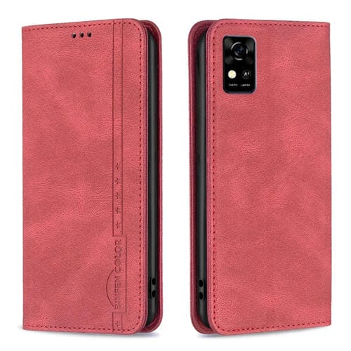Funda para ZTE Blade A31 con Bloqueo Magnético RFID Antirrobo de Cuero (Rojo)
