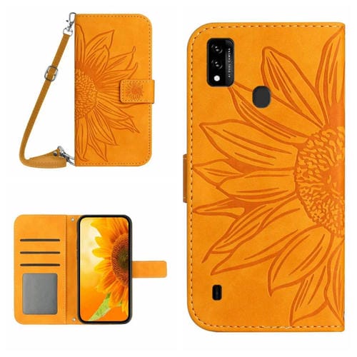 Funda Flip de Cuero ZTE Blade A51/A7P Skin Feel con Cordón y Estampado Sun Flower (Amarillo)