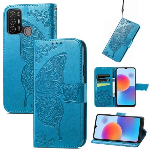 Estuche para Teléfono ZTE Blade A52 Butterfly Love Flower Cuero En Relieve (Azul)