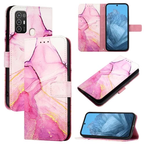 Funda de Cuero con Tapa para ZTE Blade A52 Pt003 con Patrón de Mármol (Oro Rosa Púrpura)