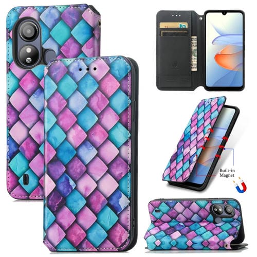 Estuche de Cuero Magnético Caseneo para ZTE Blade L220 (Escamas Moradas)