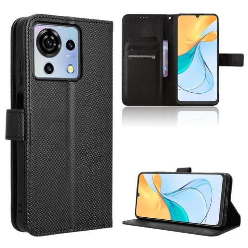 Funda de Cuero para ZTE Blade V50 Vita 4G con Textura de Diamante (Negro)