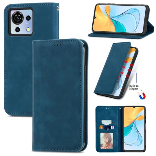 Funda de Cuero Magnética para ZTE Blade V50 Vita Retro Skin Feel (Azul)