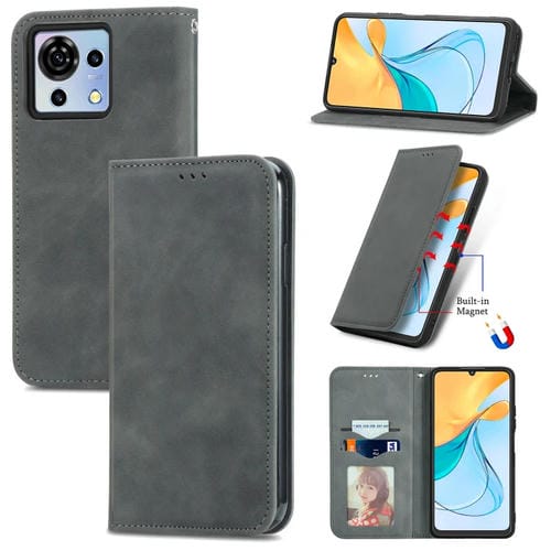 Funda de Cuero Magnética para ZTE Blade V50 Vita Retro Skin Feel (Gris)
