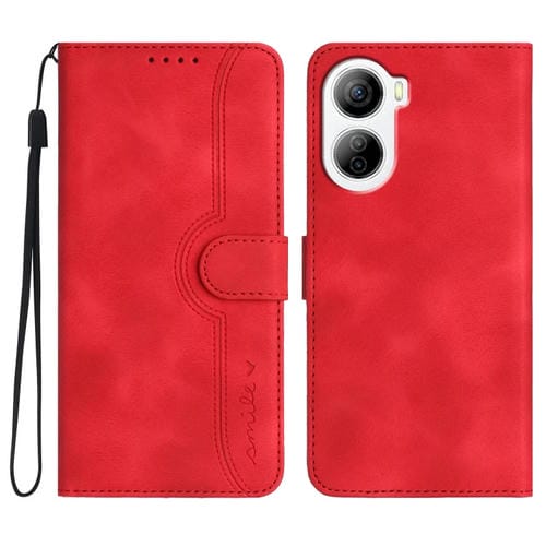Funda de Cuero para ZTE Libero 5G Iv con Sensación de Piel y Patrón de Corazón (Rojo)