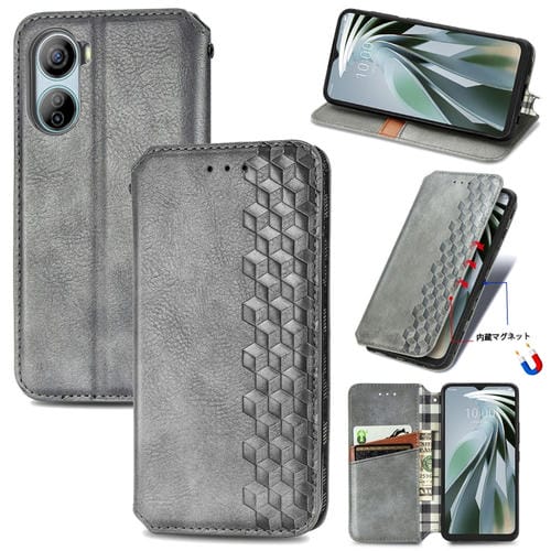 Funda para ZTE Libero 5G Iv de Cuero Magnético Prensado con Rejilla Cúbica (Gris)