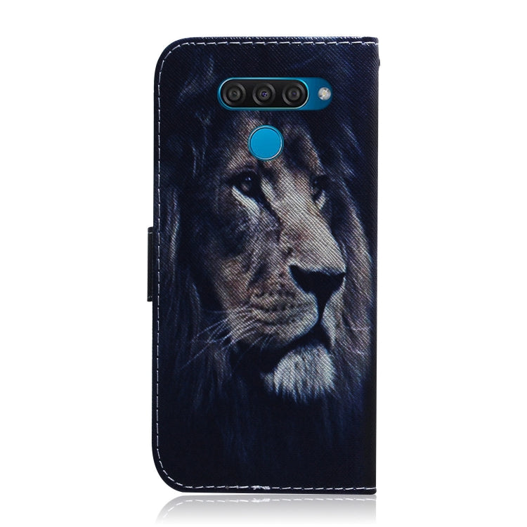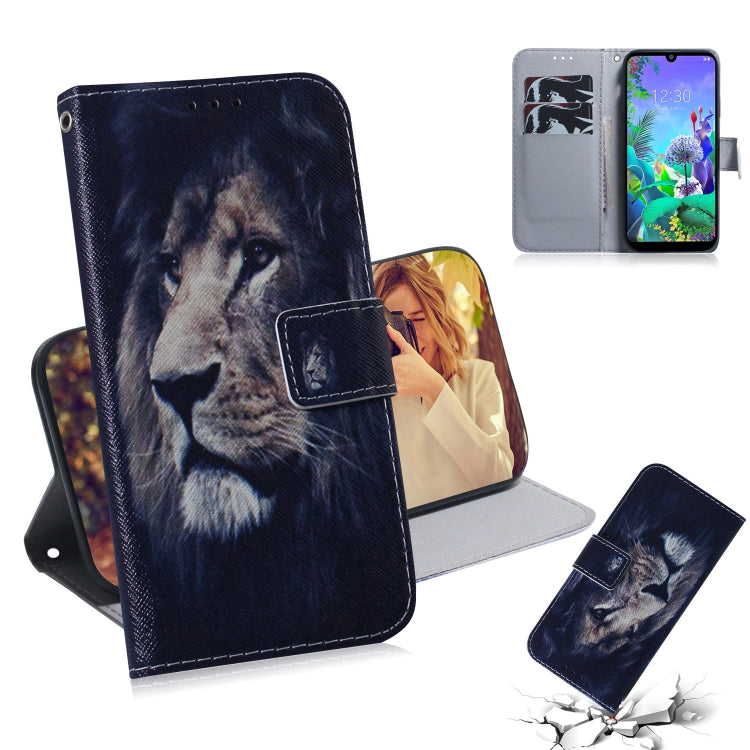 Funda de Cuero con Tapa Horizontal y Soporte para LG Q60 (Lion) con Ranuras para Tarjetas y Billetera