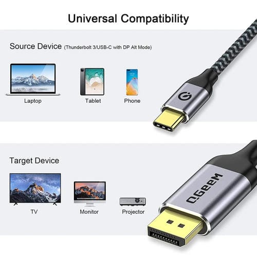 - 1x Cable Adaptador Qgeem QG-UA13 Tipo-C a DP 4K 60Hz Trenzado de Nailon 1,8 m