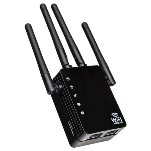El repetidor WiFi extensor de rango 5G/2,4G con velocidad de transmisión de hasta 1200Mbps es un dispositivo diseñado para ampliar la cobertura de redes Inalámbricas en espacios residenciales o comerciales. Compatible con redes WiFi de doble Banda (5 GHz y 2,4 GHz), este extensor mejora la estabilidad y el alcance de la Señal mediante cuatro Antenas externas de alta ganancia. Dispone de dos Puertos Ethernet RJ45 que permiten la Conexión por Cable de dispositivos que requieren mayor estabilidad o velocidad. Su configuración es sencilla gracias al Botón de cifrado WPS con un solo clic y ofrece dos modos de funcionamiento: relé y punto de acceso (AP), adaptándose a diferentes escenarios de ampliación de red. El enchufe europeo y el diseño en color Negro facilitan su integración en entornos estándar.