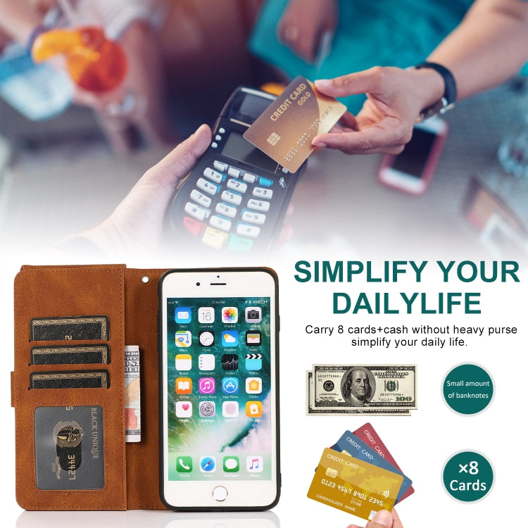 Funda Cuero Skin-Feel Crazy Horse Wallet Bag con Tapa Horizontal Soporte y Ranuras para Tarjetas iPhone 6 Plus (Marrón)