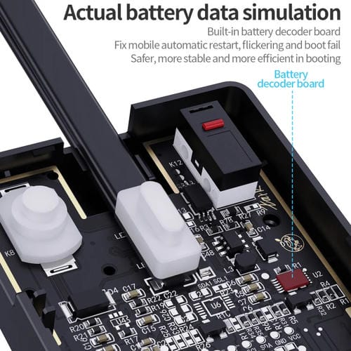 - Circuito host mejorado, Placa decodificadora de Batería integrada, diseño con Botón dual para simulación y Carga, Conectores soldados, interfaz dual USB tipo C, Conector tipo banana, Soporte de Batería con hebilla incorporada