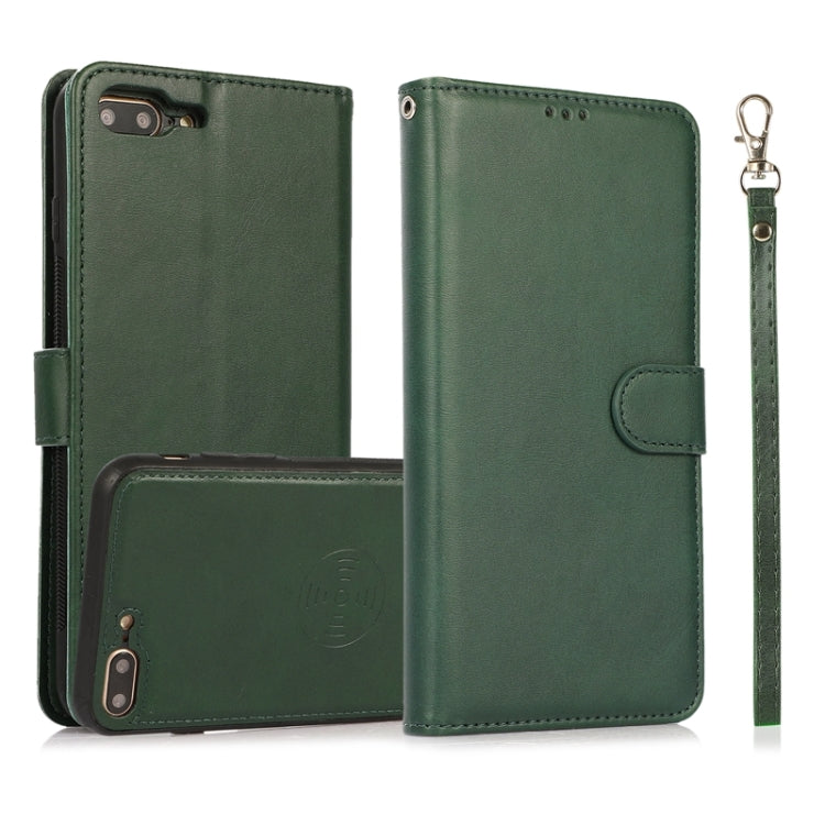 Funda de Cuero 2 En 1 Textura de Pantorrilla para iPhone 8 Plus / 7 Plus con Soporte y Ranuras (Green)