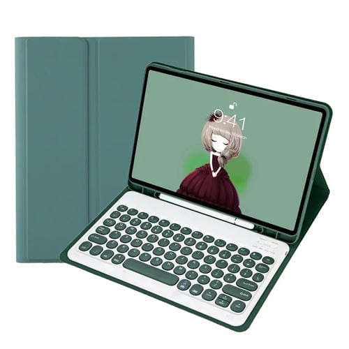 Funda Teclado Bluetooth Ya08B con Teclas Redondas para Samsung Galaxy Tab A8 10.5 (2021) (Verde Oscuro)