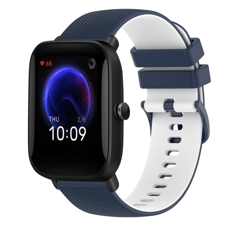 Correa de Reloj para Amazfit Pop Pro Silicona Dos Colores a Cuadros 20mm (Azul Oscuro + Blanco)