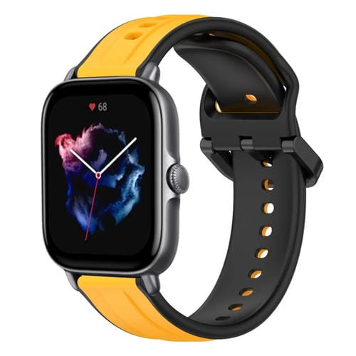 Correa de Silicona para Amazfit GTS 3 con Bucle Convexo de 20mm (Amarillo + Negro)