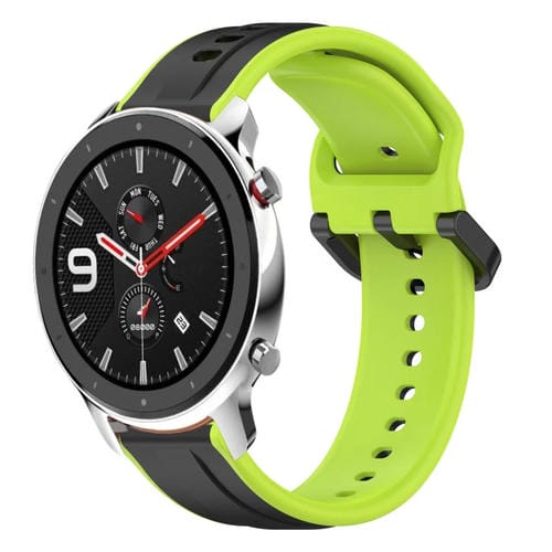 Correa de Reloj para Amazfit GTR 4 Pro Silicona Dos Colores Bucle Convexo 22mm (Negro + Lima)