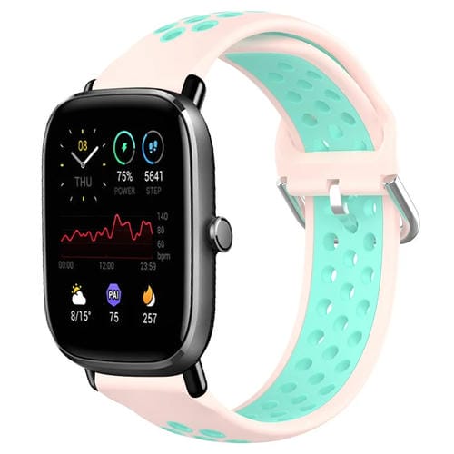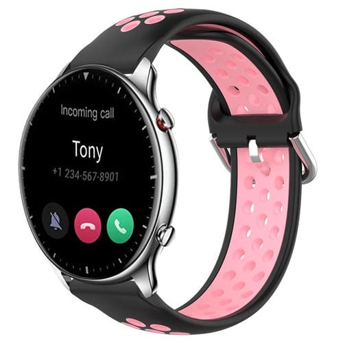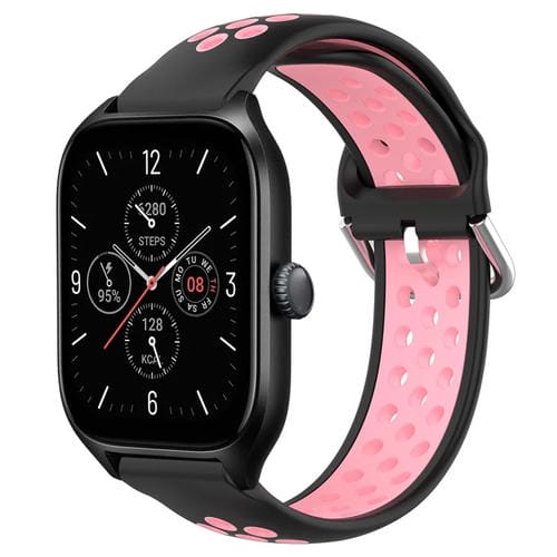 Correa de Reloj Amazfit GTS 3 20mm Silicona Deportiva Transpirable Perforada (Negro + Rosa)