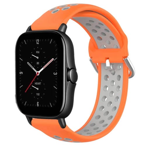 Correa de Reloj Amazfit GTS 2E 20mm Silicona Deportiva Transpirable Perforada (Naranja + Gris)