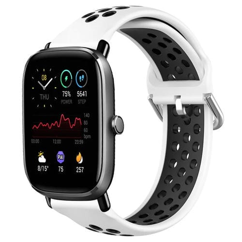 Correa de Reloj silicona deportiva Amazfit GTS 4 20mm transpirable perforada (Blanco + Negro)