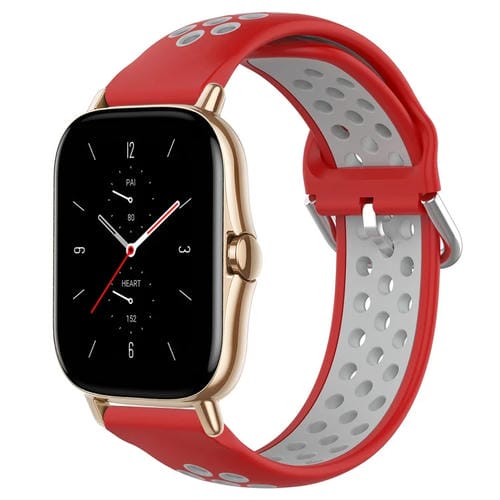 Correa de Reloj para Amazfit GTS 2 20mm Silicona Deportiva Transpirable Perforada (Rojo + Gris)