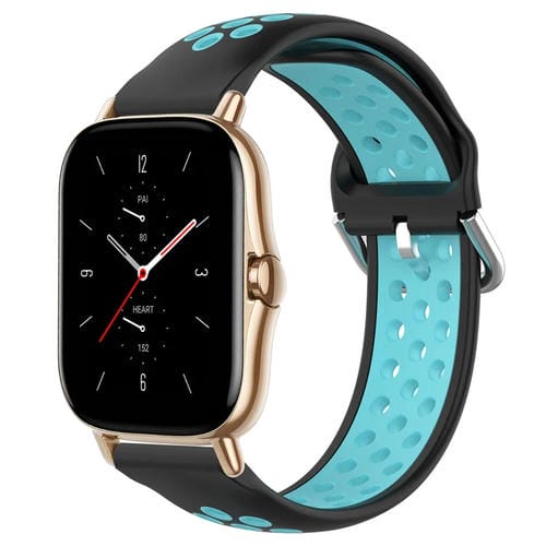 Correa de Reloj para Amazfit GTS 2 20mm Silicona Deportiva Transpirable Perforada (Negro + Azul)