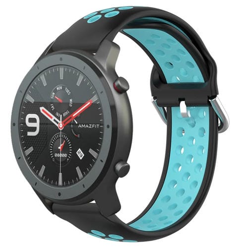 Banda de Reloj Amazfit GTR 4 Pro 22mm Silicona Deportiva Transpirable Perforada (Negro + Azul)
