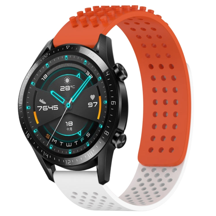 Correa de Reloj Huawei GT2 46mm 22mm silicona transpirable con agujeros y puntos 3D (Naranja + Blanco)