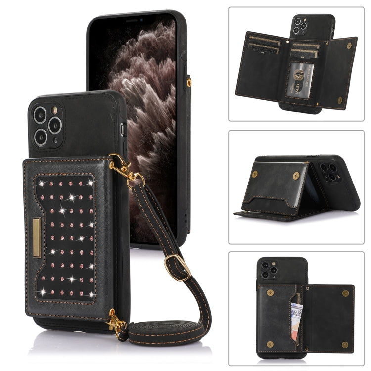 Funda para iPhone 11 Pro Max Crossbody 3D Cuero con Tapa En Relieve (Negro)