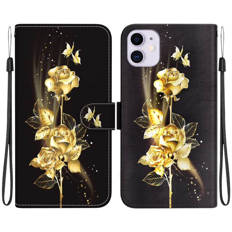 Funda de Cuero para Teléfono iPhone 11 con Dibujo Coloreado y Textura de Cristal (Mariposa Dorada Rosa)