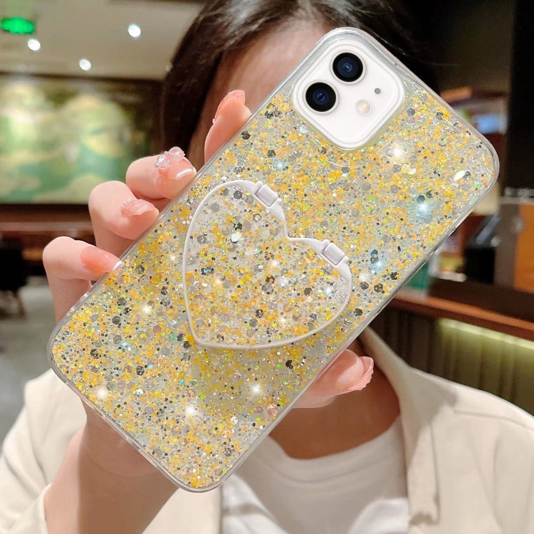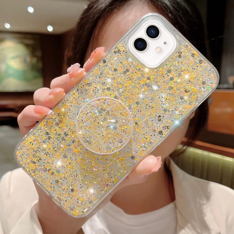Funda para Teléfono TPU Epoxi para iPhone 11 con Soporte Redondo y Lentejuelas Estrelladas (Amarillo)