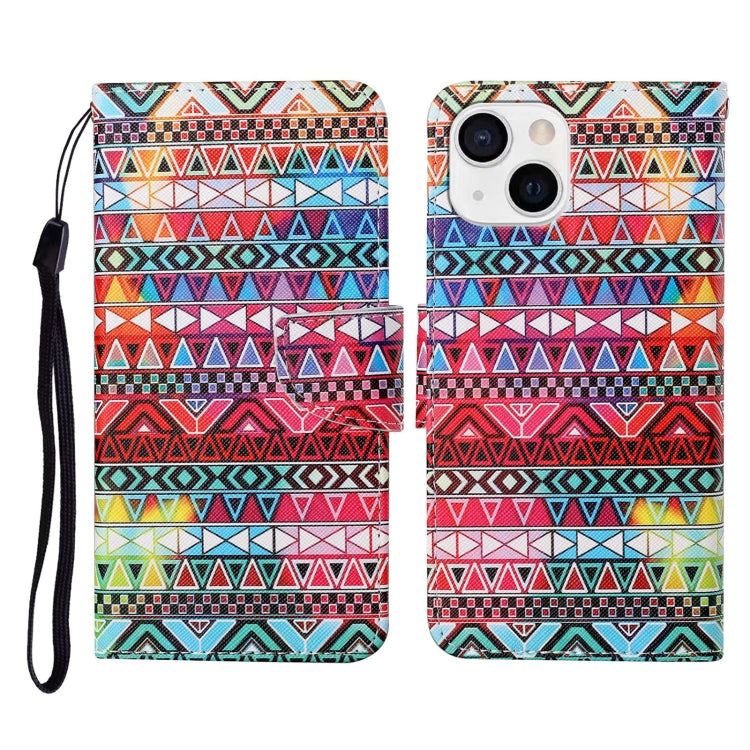 Funda de Cuero para iPhone 13 Mini Patrón Dibujo Coloreado con Tapa Horizontal (Étnico Tribal)
