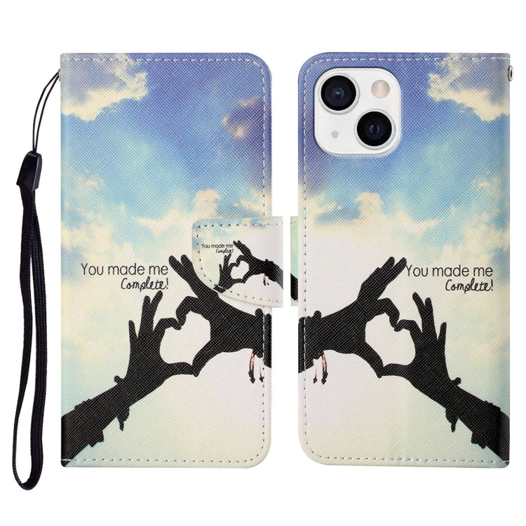 Funda de Cuero para iPhone 13 Mini con Tapa Horizontal y Patrón de Dibujo Coloreado (Gesto de Amor)