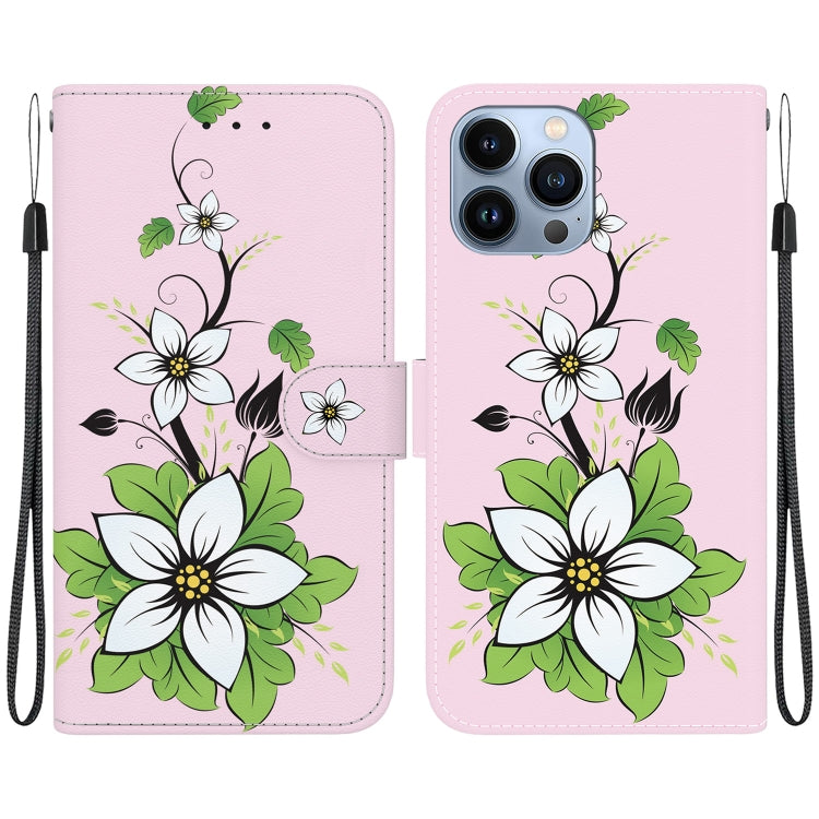 Funda para Teléfono iPhone 13 Pro Cuero Dibujo Coloreado Textura de Cristal (Lily)