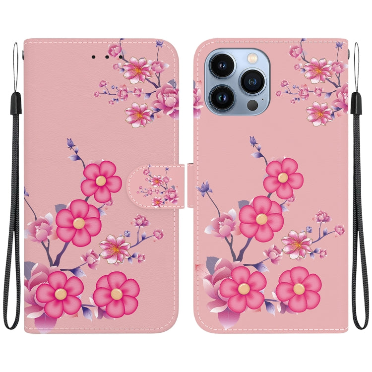 Funda de Teléfono iPhone 13 Pro Cuero Dibujo Coloreado Textura de Cristal (Flor de Ciruelo)