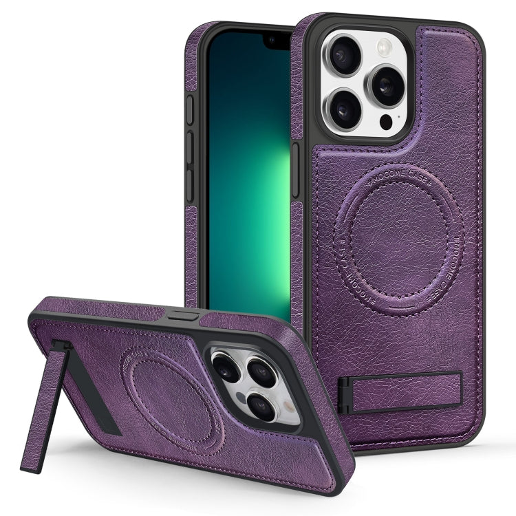 Funda para Teléfono iPhone 13 Pro Magsafe PU con Soporte Multifunción (Púrpura)