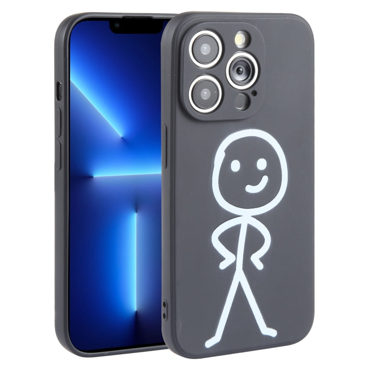 Funda de teléfono iPhone 13 Pro Stickman Pattern Silicona Líquida (Negro)