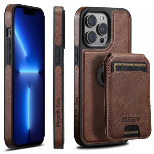Funda para teléfono Suteni M2 para iPhone 13 Pro con Magsafe y bolsa para tarjeta horizontal (Marrón)