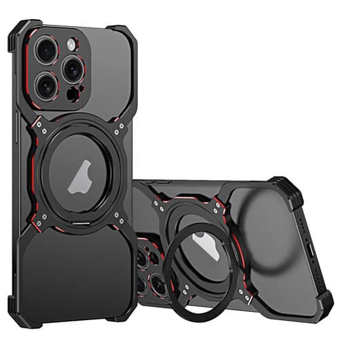 Funda de Teléfono para iPhone 13 Pro Metal con Soporte Magsafe sin Bordes Brazo Mecánico (Negro Rojo)