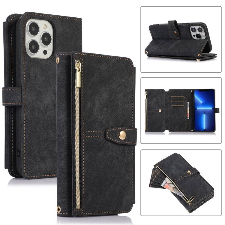 Funda de Cuero para Teléfono iPhone 13 Pro Sheep Texture Cross-Body Zipper Wallet (Negro)
