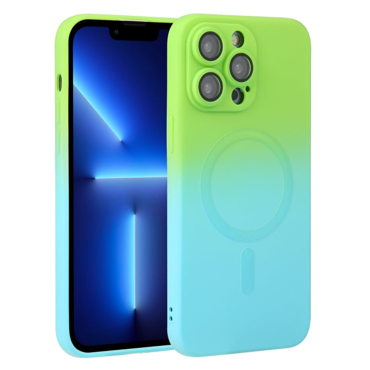 Funda para iPhone 13 Pro Liquid TPU Silicone Gradient Magsafe (Azul Cian)
