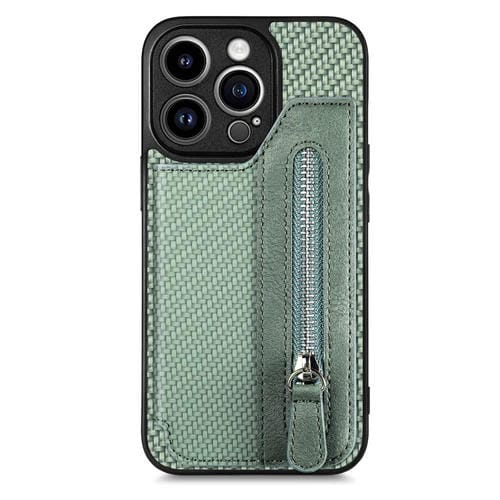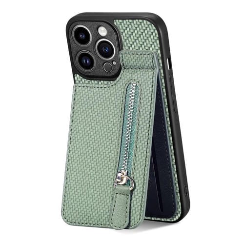 Funda de Teléfono iPhone 13 Pro Cremallera Vertical Fibra de Carbono (Verde)