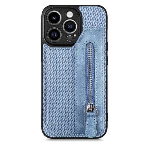 Funda para iPhone 13 Pro Carbon Fiber Horizontal Flip Zipper Wallet (Azul)