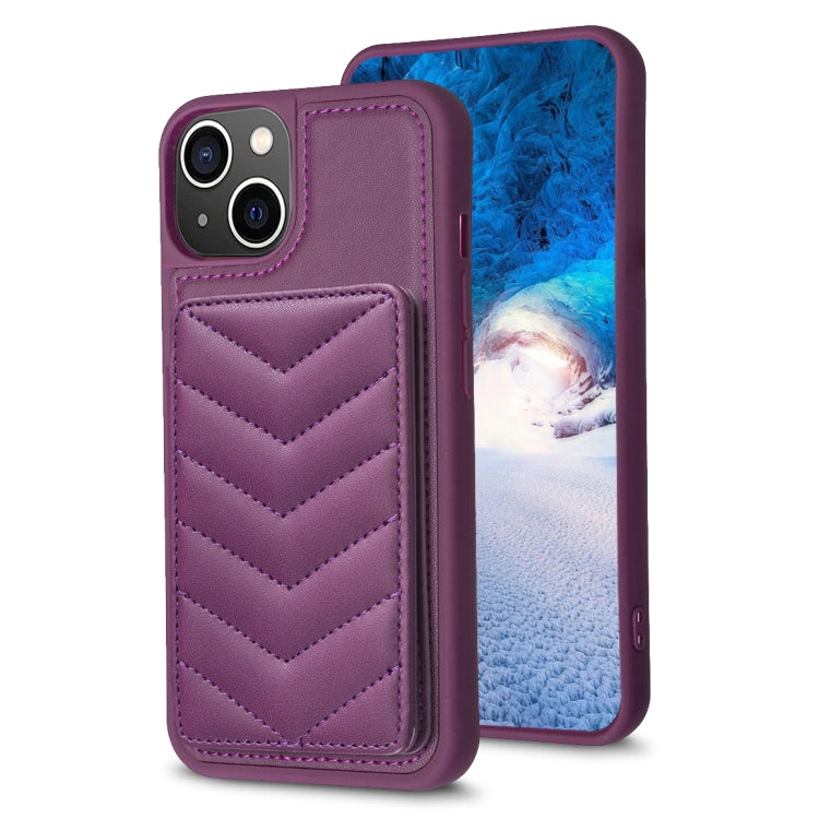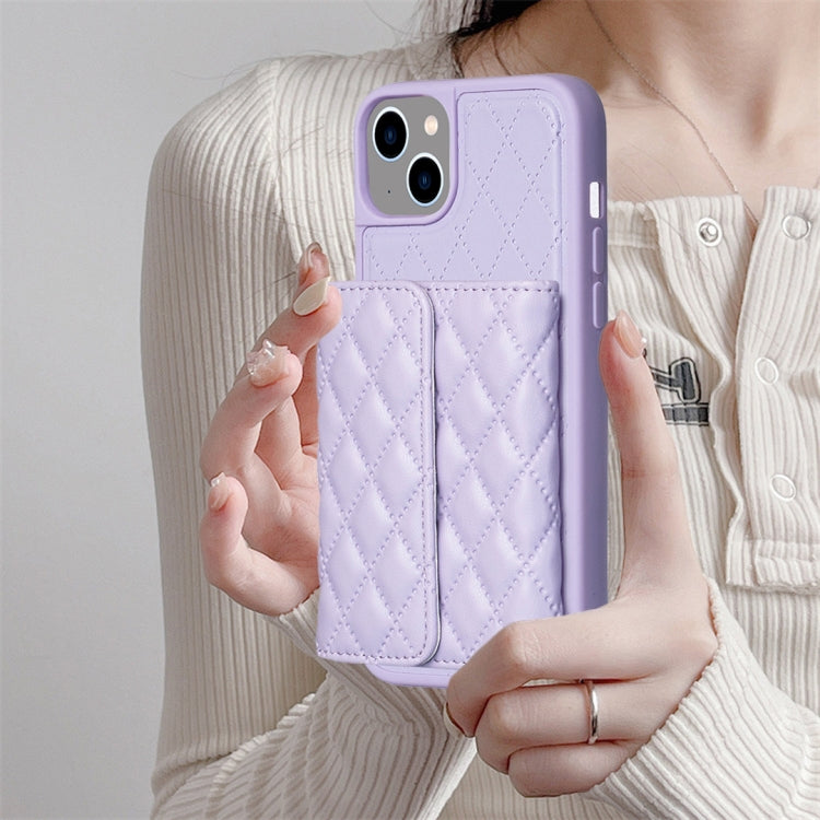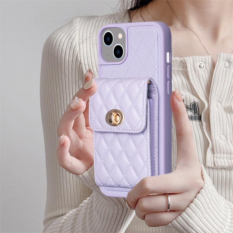 Funda para iPhone 15 Plus BF25 Square Plaid Card Bag Holder Phone Case (Púrpura)
