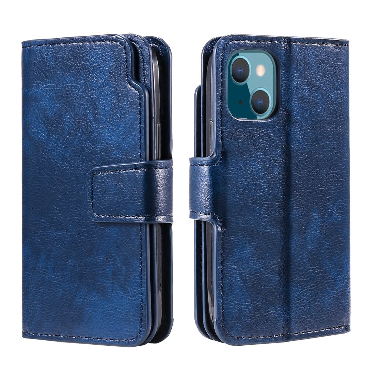 Funda para Teléfono iPhone 15 Plus Cuero con Billetera Triple de 9 Tarjetas (Azul)